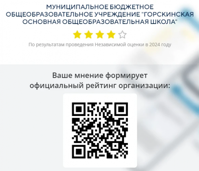 Уважаемые посетители сайта, Вы можете оставить мнение о нашей организации. Чтобы оценить условия осуществления образовательной деятельности наведите камеру Вашего телефона и отсканируйте QR-код.